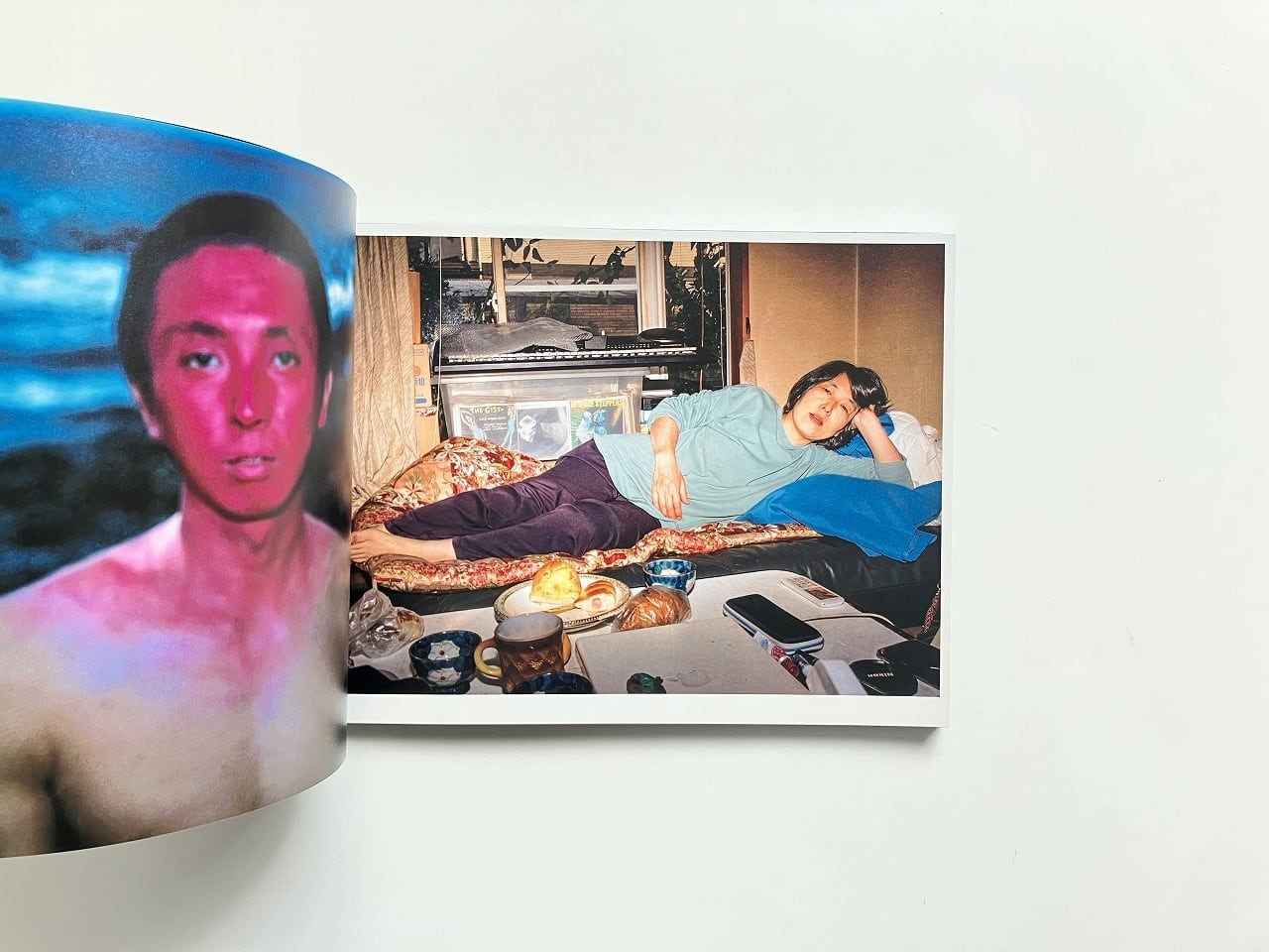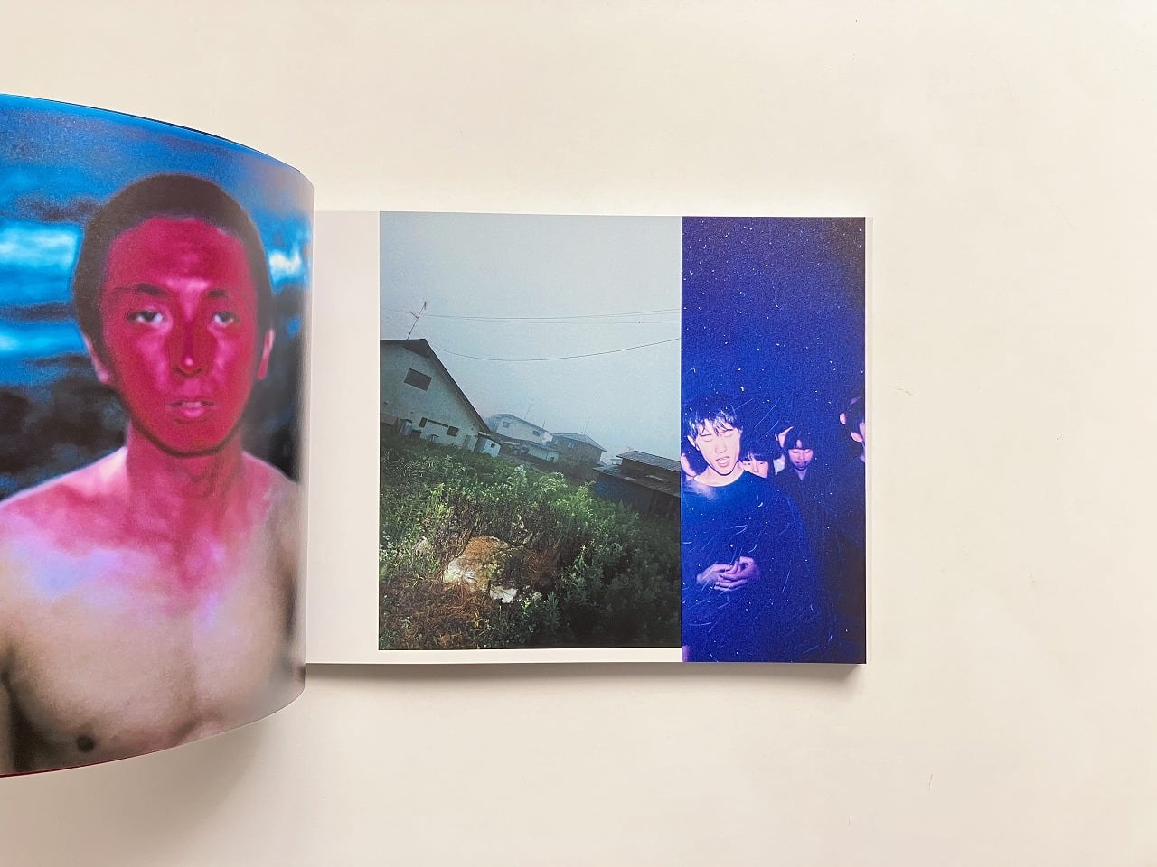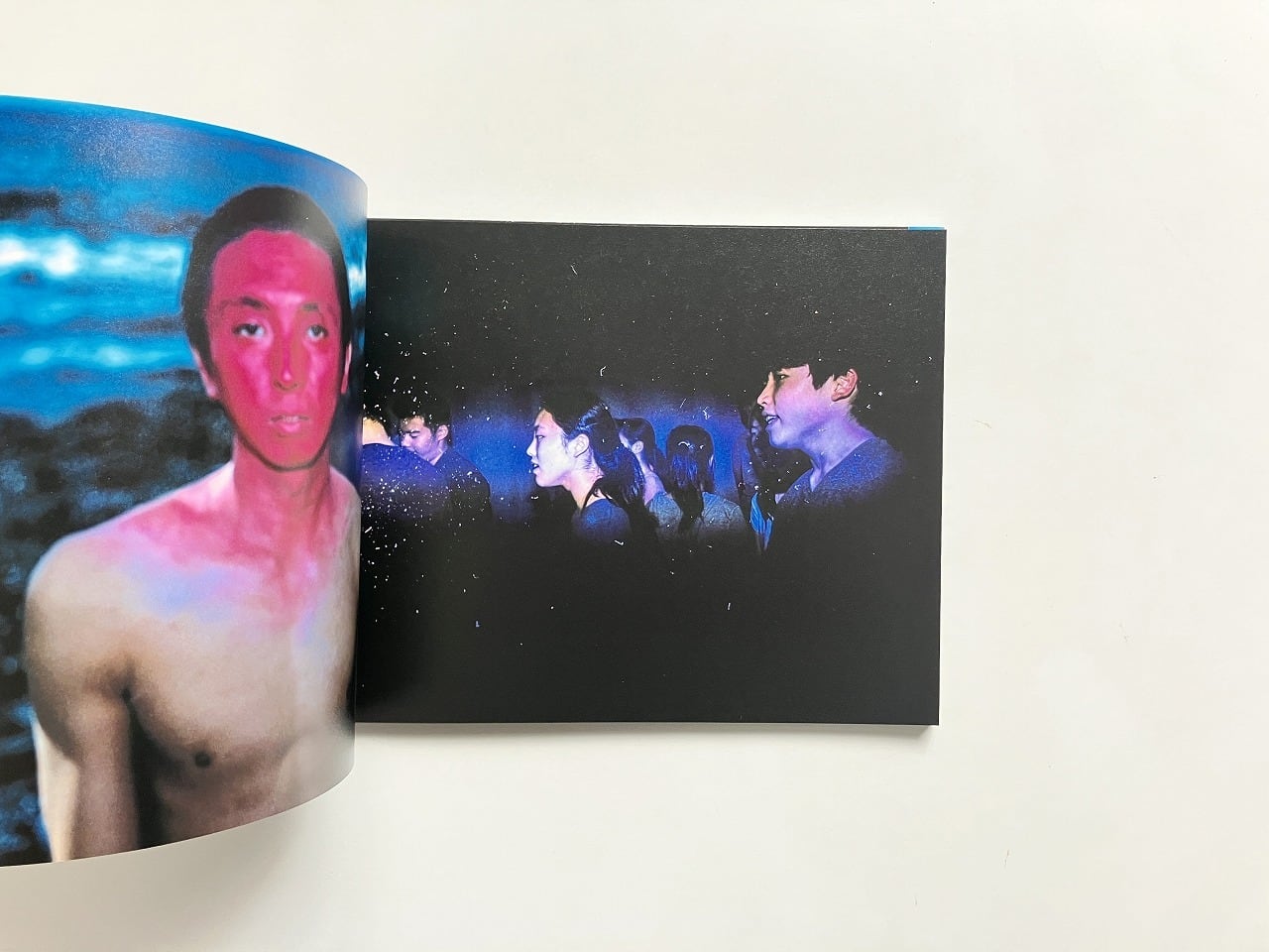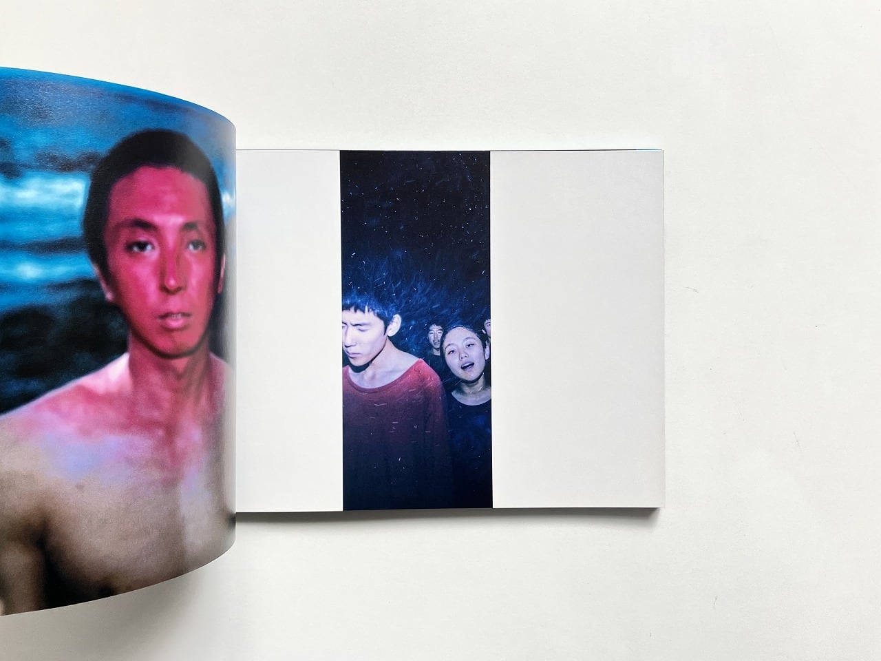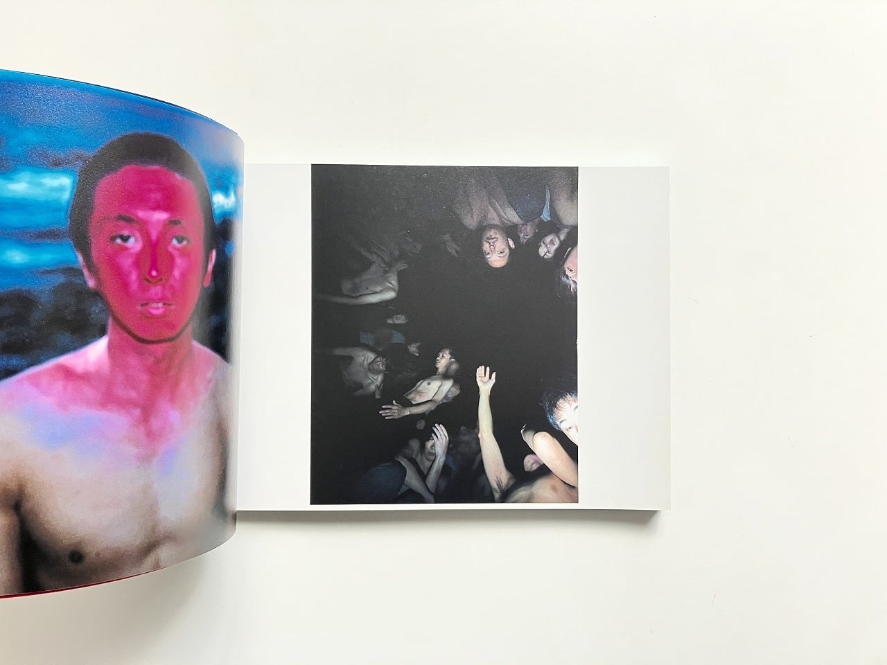 ページ左側には展示でも一面に用いられた顔を赤く塗った男性の姿があり、右側にはさまざまな作品が並ぶ大胆な構成となっています。